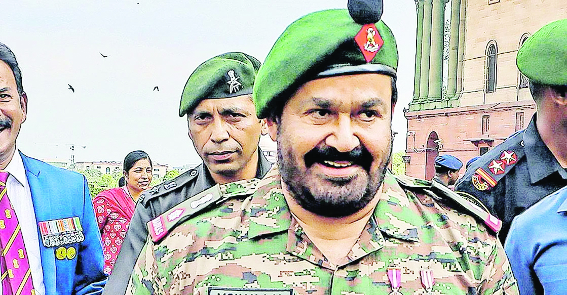 ദാ ഇപ്പോള്‍ ആ താടി ഇപ്പോള്‍ ദേശീയതലത്തില്‍ ‘പ്രച്‌ന’?മായിരിക്കുന്നു. ദാദാ സാഹേബ് ഫാല്‍ക്കെ പുരസ്‌കാരം നേടിയ, ടെറിട്ടോറിയല്‍ ആര്‍മിയില്‍ ലഫ്.കേണല്‍ (ഓണററി) കൂടിയായ നടന്‍ മോഹന്‍ലാലിനെ കരസേനാ മേധാവി ജനറല്‍ ഉപേന്ദ്ര ദ്വിവേദി കമന്‍ഡേഷന്‍ കാര്‍ഡ് നല്‍കി ആദരിച്ചിരുന്നു. ഈ ചടങ്ങില്‍ മോഹന്‍ലാല്‍ താടി വടിക്കാതെ യൂണിഫോമില്‍ ക്യാപ് അണിഞ്ഞാണെത്തിയത്. സൈനിക യൂണിഫോം ധരിക്കുമ്പോള്‍ താടി വടിച്ചിരിക്കണമെന്നാണു ചട്ടം.