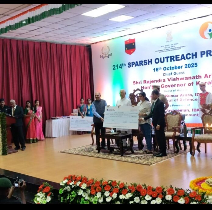 ഡിഫൻസ് പെൻഷൻകാർക്കുള്ള ‘സ്പർഷ് ഔട്ട്റീച്ച് പരിപാടി’ കേരള ഗവർണർ ശ്രീ. രാജേന്ദ്ര വിശ്വനാഥ് അർലേക്കർ ഇന്ന് (16 ഒക്ടോബർ 2025) പാങ്ങോട് സൈനിക കേന്ദ്രത്തിലെ കരിയപ്പ ഓഡിറ്റോറിയത്തിൽ ഉദ്ഘാടനം ചെയ്തു കൺട്രോളർ ജനറൽ ഓഫ് ഡിഫൻസ് അക്കൗണ്ട്സ് ശ്രീ രാജ് കുമാർ അറോറ, ഐ.ഡി.എ.എസ്, ചെന്നൈ കൺട്രോളർ ഓഫ് ഡിഫൻസ് അക്കൗണ്ട്സ് ശ്രീ ടി. ജയശീലൻ, ഐ.ഡി.എ.എസ് പാങ്ങോട് സൈനിക കേന്ദ്രം ഒഫീഷ്യേറ്റിംഗ് സ്റ്റേഷൻ കമാൻഡർ കേണൽ മഹേശ്വർ സിംഗ് ജാംവാൾ എന്നിവരും ചടങ്ങിൽ പങ്കെടുത്തു.