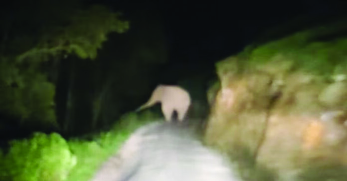 ഇതോടെ ചിന്നംവിളിച്ച് ജീപ്പിനുനേരെ ആനയും ഓടാന് തുടങ്ങി. അര കിലോമീറ്റര് ഓടിച്ചശേഷം മഞ്ഞും ഇരുട്ടും കാരണം പിന്നോട്ടു പോകാന് കഴിയാതെ ജീപ്പ് നിര്ത്തി. ഇതോടെ ആന വാഹനത്തിന് ചുറ്റും തുമ്പി കൊണ്ട് മണം പിടിച്ച് നടന്ന ശേഷം സമീപത്തെ തേയില തോട്ടത്തിലേക്കു നടന്നു. ആന മാറിയശേഷമാണ് സംഘം യാത്ര തുടര്ന്നത്.