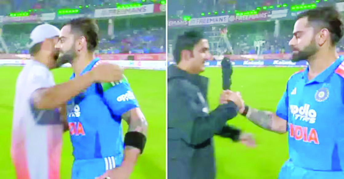 മത്സരശേഷം എല്ലാ സഹതാരങ്ങള്ക്കും സപ്പോര്ട്ടിങ് സ്റ്റാഫിനും ഹസ്തദാനം നല്കിയ കോലി, ഗൗതം ഗംഭീറിന് അടുത്ത് എത്തുമ്പോള് ആളാകെ മാറുന്നതായാണ് ആരാധകര് ചൂണ്ടിക്കാട്ടുന്നത്. കോലിയുടെ ചിരി മായുന്നതും ശരീരപ്രകൃതി അപ്പാടെ മാറുന്നതും ദൃശ്യങ്ങളില് കാണാം. ചിരിച്ചുകൊണ്ടാണ് കോലി എല്ലാവര്ക്കും കൈ കൊടുത്ത് കെട്ടിപ്പിടിക്കുന്നത്. രോഹിത് ശര്മയെ വിരാട് കോലി ഹഗ് ചെയ്തതിനു പിന്നാലെയാണ് ഗംഭീര്, കോലിയുടെ അടുത്തെത്തുന്നത്. എന്നാല് അതുവരെ എല്ലാവരെയും കെട്ടിപ്പിടിച്ച കോലി, ഗംഭീറിനു കൈ കൊടുക്കുക മാത്രം ചെയ്ത് മുന്നോട്ടു പോയി. കോലിയുടെ ചിരി പെട്ടെന്നു മായുന്നതും വ്യക്തമാണ്.