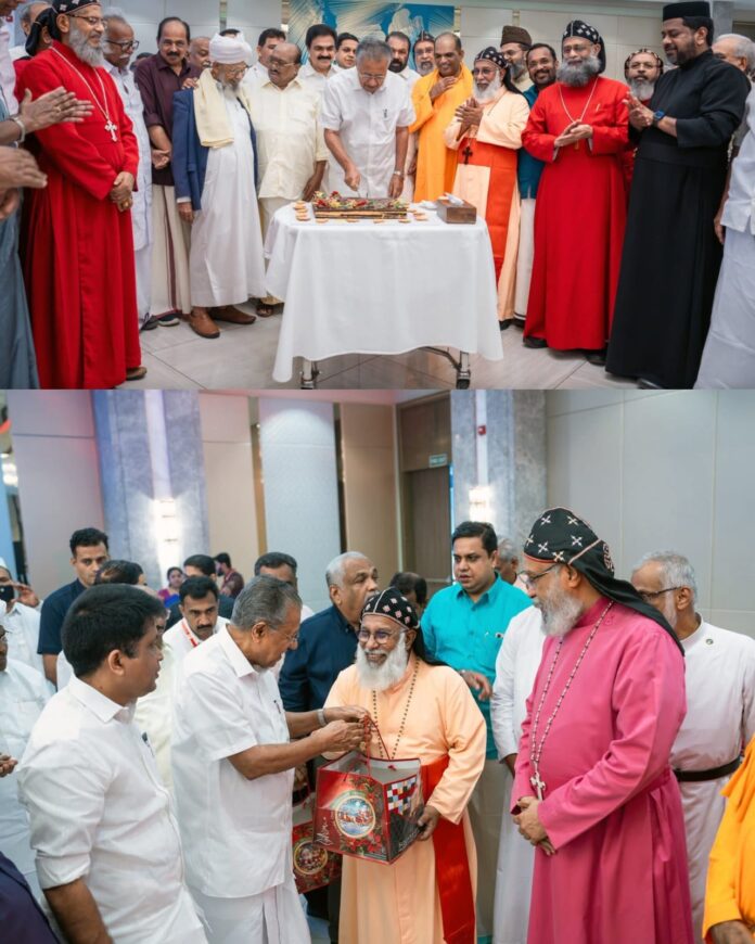 ക്രിസ്മസ്- പുതുവത്സര ആഘോഷങ്ങളുടെ ഭാഗമായി മുഖ്യമന്ത്രി പിണറായി വിജയൻ വിരുന്നൊരുക്കി. ഹയാത്ത് റീജൻസിയിൽ നടന്ന വിരുന്നിൽ കർദിനാൾ ബസേലിയോസ് ക്ലീമീസ് കതോലിക്ക ബാവ, ബസേലിയോസ് മാർതോമ മാത്യൂസ് ത്രിതീയൻ കതോലിക്ക ബാവ, ഗബ്രിയേൽ മാർ ഗ്രിഗോറിയസ് മെത്രാപ്പൊലീത്ത, മാർ ബസേലിയോസ് ജോസഫ് കാതോലിക്ക ബാവ, ഐസക് മാർ ഫിലോക്സിനോസ് എപ്പിസ്കോപ്പ, വെള്ളാപ്പള്ളി നടേശൻ, വി പി സുഹൈബ് മൗലവി, സ്വാമി ഗുരുരത്നം ജ്ഞാനതപസ്വി, എം വി ഗോവിന്ദൻ മാസ്റ്റർ, ബിനോയ് വിശ്വം, ജോസ് കെ മാണി, ഒ രാജഗോപാല്, അടൂർ ഗോപാലകൃഷ്ണൻ, ഭാവന, മല്ലികാ സുകുമാരൻ, കമൽ, ടി കെ രാജീവ് കുമാർ, ഭാഗ്യലക്ഷ്മി, മധുപാൽ, കുക്കു പരമേശ്വരൻ, പ്രേംകുമാർ, സൂര്യ കൃഷ്ണമൂർത്തി, മന്ത്രിമാരായ കെ രാജൻ, റോഷി അഗസ്റ്റിൻ, കെ കൃഷ്ണൻകുട്ടി, എ കെ ശശീന്ദ്രൻ, ജി ആർ അനിൽ, കെ എൻ ബാലഗോപാൽ, ഡോ. ആർ ബിന്ദു, ജെ ചിഞ്ചുറാണി, രാമചന്ദ്രന് കടന്നപ്പള്ളി, എം ബി രാജേഷ്, വി ശിവൻകുട്ടി, പി പ്രസാദ്, വി എൻ വാസവൻ, വീണാ ജോർജ്, നിയമസഭാ സ്പീക്കർ എ എൻ ഷംസീർ, തിരുവനന്തപുരത്തെ എംഎൽഎമാർ, ചീഫ് സെക്രട്ടറി ഡോ എ ജയതിലക്, സംസ്ഥാന പൊലീസ് മേധാവി റവാഡ ചന്ദ്രശേഖർ, ജില്ലാ കളക്ടർ അനുകുമാരി, മുൻ ചീഫ് സെക്രട്ടറി വി പി ജോയ്, സംസ്ഥാന തിരഞ്ഞെടുപ്പ് കമ്മിഷണര് എ ഷാജഹാന്, ബാലാവകാശ കമ്മീഷൻ ചെയർപേഴ്സൺ കെ വി മനോജ് കുമാർ, വനിതാ കമ്മീഷൻ അദ്ധ്യക്ഷ പി സതീദേവി തുടങ്ങി സാമൂഹ്യ-സാംസ്കാരിക പ്രമുഖരും ജനപ്രതിനിധികളും മതനേതാക്കളും ഉന്നത ഉദ്യോഗസ്ഥരും രാഷ്ട്രീയ നേതാക്കളും പങ്കെടുത്തു.