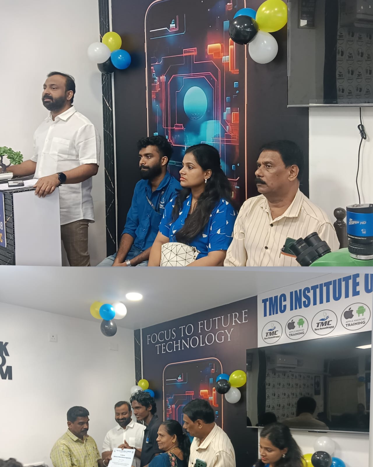 തിരു :കേന്ദ്ര സർക്കാരിന് കീഴിൽ നാക്ടക്റ്റ് അംഗീകാരത്തോടെ വെള്ളയമ്പലത്തുള്ള റ്റി. എം. സി. മൊബൈൽ ടെക്നോളജി എറണാകുളം കലൂർ ശാഖയിൽ ചീഫ് അഡ്മിനിസ്ട്രേറ്റർ പനച്ചമൂട് ഷാജഹാന്റെ അദ്ധ്യക്ഷതയിൽ മാനേജിങ് ഡയറക്ടർ ജമീൽ യൂസഫ് സംഗമം ഉത്ഘാടനം ചെയ്തു. രക്ഷകർത്താക്കൾ തന്നെ മക്കളുടെ സർട്ടിഫിക്കറ്റ് വിതരണം ചെയ്തു.വ്ലോഗർ സൗമ്യ അരുൺ ആശംസകൾ നേർന്നു. ഫാക്കൽറ്റി ഷംസുദീൻ പാലക്കാട് സ്വാഗതവും, ഫാക്കൽറ്റി അയന കോഴിക്കോട് നന്ദിയും പറഞ്ഞു. ട്രെയിനീസ് സംഗമവും നടന്നു.അരുൺ, അശ്വിൻ പ്രദീപ്‌, സൽഹാൻ എന്നിവർ പങ്കെടുത്തു