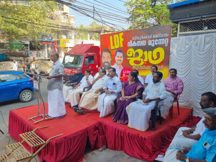 ഇടതുപക്ഷ ജനാധിപത്യ മുന്നണി വട്ടിയൂർക്കാവ് മണ്ഡലം കമ്മിറ്റിയുടെ നേതൃത്വത്തിൽ വി കെ പ്രശാന്ത് എംഎൽഎ നയിച്ച വട്ടിയൂർക്കാവ് വികസന മുന്നേറ്റ ജാഥയിൽ കണ്ണമ്മൂല,കുന്നുകുഴി,നാലാഞ്ചിറ തുടങ്ങിയ സ്ഥലങ്ങളിൽ കൂടിയ വിശദീകരണ യോഗത്തിൽ സംസാരിക്കുകയായിരുന്നു അദ്ദേഹം