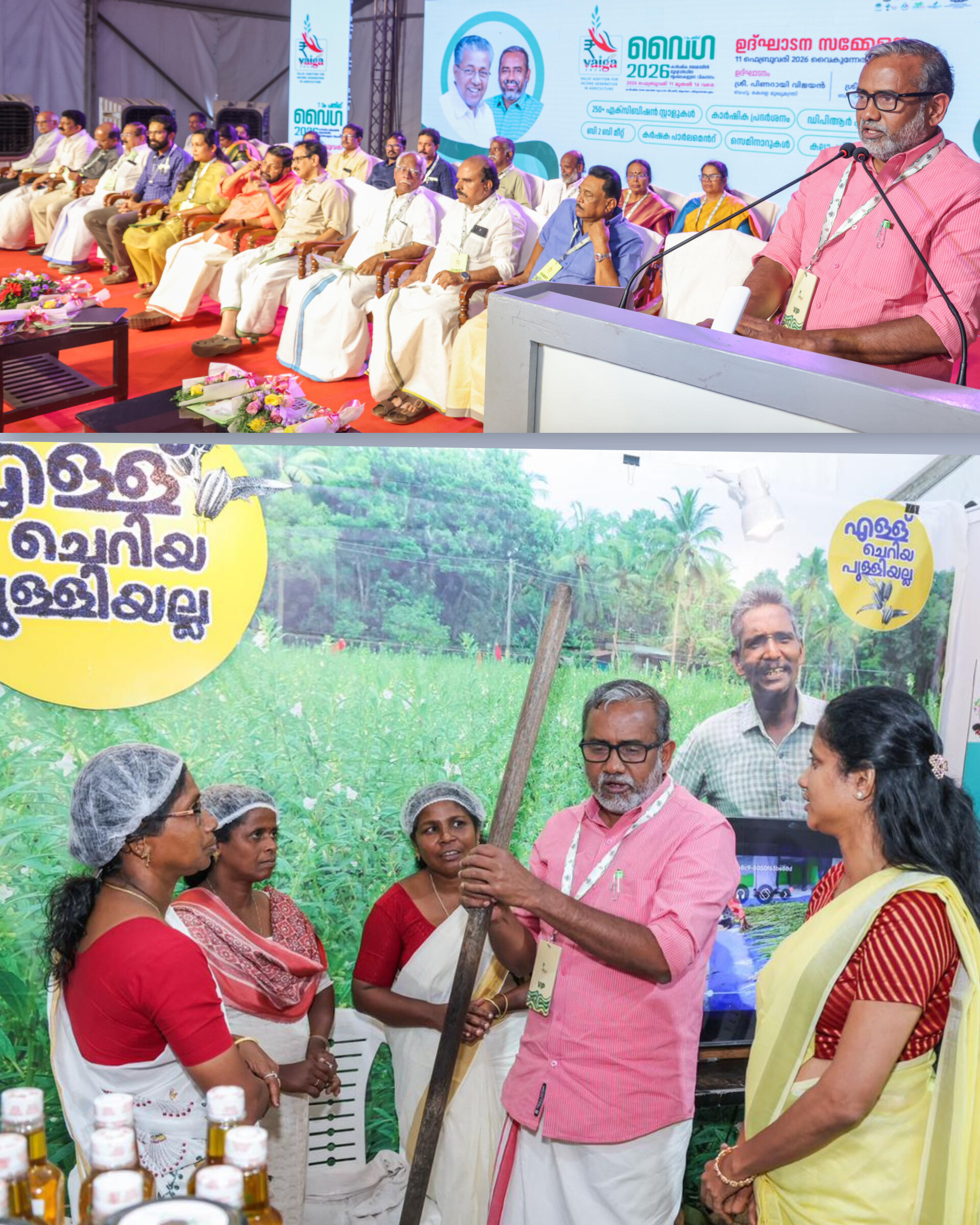 തിരുവനന്തപുരം: സംസ്ഥാനത്തെ കാർഷികോൽപ്പന്നങ്ങളുടെ സംസ്കരണം, മൂല്യവർദ്ധനവ്, വിപണനം എന്നീ മേഖലകളുടെ സാദ്ധ്യതകൾ പ്രയോജനപ്പെടുത്തി കർഷകരുടെ വരുമാനം വർധിപ്പിക്കുന്നതിനും പുതിയ സംരംഭകരെ കാർഷിക മേഖലയിലേക്ക് ആകർഷിക്കുന്നതിനുമായി കാർഷിക വികസന കർഷക ക്ഷേമ വകുപ്പ് സംഘടിപ്പിക്കുന്ന വൈഗ 2026 ന് ഇന്ന് (ഫെബ്രുവരി 11) തിരുവനന്തപുരം ആനയറ വേൾഡ് മാർക്കറ്റ് ഗ്രൗണ്ടിൽ തുടക്കമായി. CIAL മോഡലിൽ കൃഷി വകുപ്പ് പണികഴിപ്പിക്കുന്ന കേരള അഗ്രോ ബിസ്സിനസ്സ് കമ്പനി ഉയരാൻ പോകുന്ന ആനയറയിലെ കൃഷി വകുപ്പിന്റെ തന്നെ വേദിയിലാണ് വൈഗ ഇത്തവണ സംഘടിപ്പിക്കുന്നത് എന്നത് വളരെ സന്തോഷം നൽകുന്ന വസ്തുതയാണെന്ന് വൈഗ 2026 ഉദ്‌ഘാടനം നിർവ്വഹിച്ചുകൊണ്ട് മന്ത്രി പറഞ്ഞു. ജൈവ പ്രോട്ടോകോൾ പാലിച്ചുകൊണ്ട് പൂർണ്ണമായും ചേനയിൽ നിർമ്മിച്ച വിളക്കാണ് ഉദ്ഘാടനത്തിന് ഉപയോഗിച്ചത്. കർഷകരുടെ അധ്വാനം വളരെ വലുതാണ് എന്നാൽ അവരുടെ ഉൽപ്പന്നങ്ങൾക്ക് അവർ അർഹിക്കുന്ന വില ലഭിക്കുന്നുണ്ടോ എന്നത് നമ്മൾ ചിന്തിക്കേണ്ട കാര്യമാണ്. ഇവിടെയാണ് കർഷകരെ സംരംഭകത്വത്തിലേക്ക് കൈപിടിച്ചു നടത്തുന്ന വൈഗ പോലുള്ള പരിപാടികളുടെ പ്രസക്തി മന്ത്രി കൂട്ടിച്ചേർത്തു. കർഷകരെ പ്രോത്സാഹിപ്പിക്കേണ്ടത് കേവലം സബ്‌സിഡികൾ നൽകിക്കൊണ്ടല്ല, എന്നാൽ കർഷകരെ മെച്ചപ്പെട്ട വരുമാനം ലഭിക്കുന്നവരാക്കി മാറ്റുന്ന സംരംഭകത്വത്തിലേക്ക് എത്തിച്ചുകൊണ്ടാവണം. കഴിഞ്ഞ വൈഗയിലൂടെ ഏതാണ്ട് 40 കോടി രൂപ മൂല്യമുള്ള ബിസ്സിനസ്സ് കരാറുകളിൽ കർഷകർക്ക് ഏർപ്പെടാൻ കഴിഞ്ഞു. കാലാവസ്ഥ നമുക്ക് മുന്നിൽ വലിയൊരു വെല്ലുവിളി ഉയർത്തുന്നുണ്ട്, കേന്ദ്ര സർക്കാരിൽ നിന്നുള്ള അവഗണന മറ്റൊരു വസ്തുതയാണ് നിലനിൽക്കുന്നു. ഈ സാഹചര്യത്തിലാണ് സംസ്ഥാന സർക്കാർ ലോക ബാങ്കിന്റെ സഹായത്തോടെ 2365 കോടി രൂപയുടെ കേര പദ്ധതി ആസൂത്രണം ചെയ്തു നടപ്പിലാക്കുന്നത്. കർഷരുടെ ഉല്പാദനത്തിന്റെ വിലയിലുള്ള അസ്ഥിരത മറ്റൊരു പ്രതിസന്ധിയാണ്. കേന്ദ്ര സർക്കാരിന്റെ താങ്ങു വിലയോടൊപ്പം സംസ്ഥാന സർക്കാരും വിഹിതം നൽകിയാണ് 30 രൂപ നിരക്കിൽ നെല്ല് സംഭരിക്കാൻ കഴിയുന്നത് മന്ത്രി പറഞ്ഞു. മൂല്യവർദ്ധനവിനോടൊപ്പം നൂതന സാങ്കേതിക വിദ്യകൾ നമുക്ക് കൃഷിയിടങ്ങളിൽ പ്രാവർത്തികമാക്കാൻ കഴിയണം. അത്തരത്തിൽ ഒരു കാർഷിക മുന്നേറ്റത്തിലൂടെ മെച്ചപ്പെട്ട ജീവിത സാഹചര്യത്തിലേക്ക് കർഷകരെ എത്തിക്കേണ്ടത് ഈ സമൂഹത്തിന്റെ ഉത്തരവാദിത്തമാണ് മന്ത്രി പറഞ്ഞു.