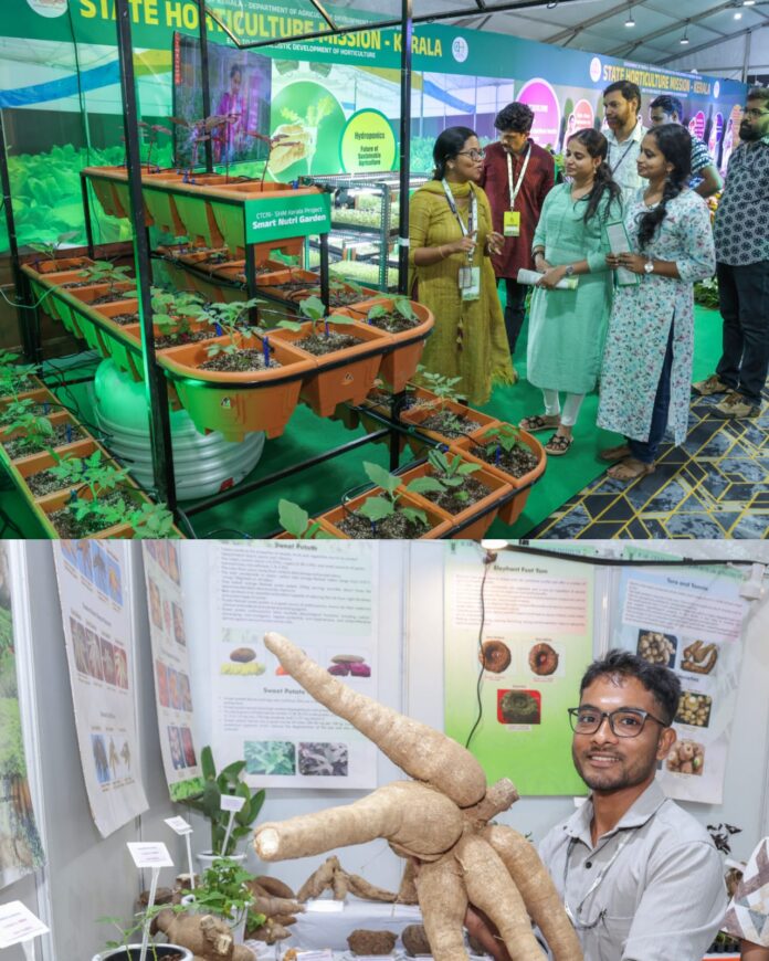 കിഴങ്ങുവർഗ്ഗങ്ങളുടെ വൈവിധ്യവും ശാസ്ത്രീയ പുരോഗതിയും അവതരിപ്പിക്കുന്ന കേന്ദ്ര കിഴങ്ങുവിള ഗവേഷണ കേന്ദ്രത്തിൻ്റെ പ്രദർശന സ്റ്റാൾ പ്രത്യേക ശ്രദ്ധ നേടുന്നു. ഒരച്ചീനി, ചേന, ചേമ്പ്, കാച്ചിൽ, മധുരക്കിഴങ്ങ് തുടങ്ങി നിരവധി ഇനങ്ങളും രോഗപ്രതിരോധ ശേഷിയുള്ള വർഗ്ഗങ്ങളും ബയോ ഇൻപുട്ടുകളും സ്മാർട്ട് ഫെർട്ടിഗേഷൻ മാതൃകകളും ഇവിടെ പ്രദർശിപ്പിച്ചിട്ടുണ്ട്. കിഴങ്ങു വർഗ്ഗങ്ങളിൽ നിന്നുള്ള പാസ്ത, നൂഡിൽസ്, ചിപ്സ്, വാക്വം ഫഡ് ഉൽപ്പന്നങ്ങൾ, എക്സ്ഡഡ് ഫുഡ്സ് തുടങ്ങിയ മുഖ്യവർധിത ഉൽപ്പന്നങ്ങളും സ്റ്റാളിൽ ലഭ്യമാണ്.