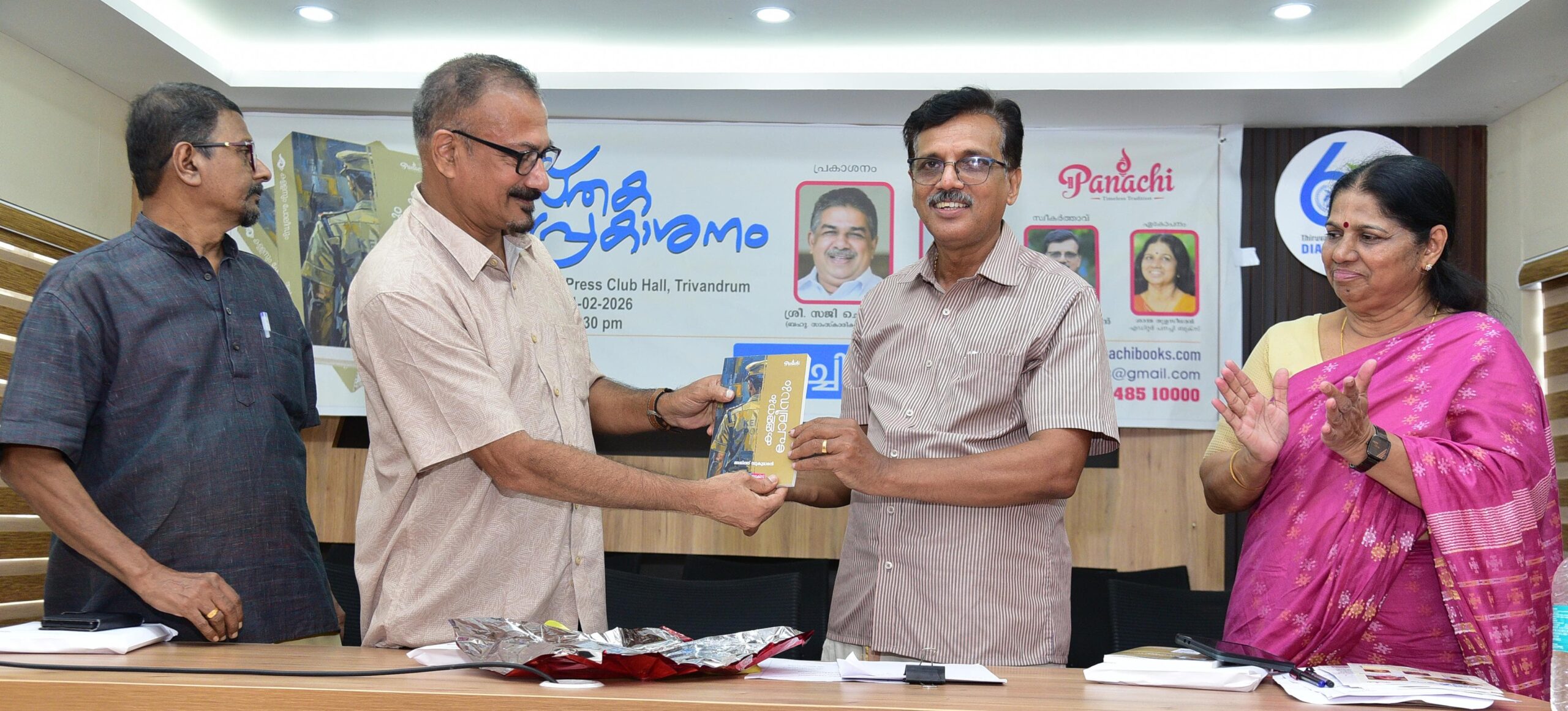 പനച്ചി ബുക്സ് പ്രസിദ്ധീകരിച്ച കള്ളനും പോലീസും എന്ന പുസ്തകം തിരുവനന്തപുരം പ്രസ്സ് ക്ലബിൽ നടന്ന ചടങ്ങിൽ രചയിതാവ് അജിത്ത് സുകുമാരൻ റിട്ട. ജയിൽ ഡി.ഐ.ജി സന്തോഷ് സുകുമാരനു നൽകി പ്രകാശനം ചെയ്യുന്നു. പി.കെ. സുരേഷ്, പനച്ചി ബുക്സ് എഡിറ്റർ ശാന്ത തുളസീധരൻ എന്നിവർ സമീപം